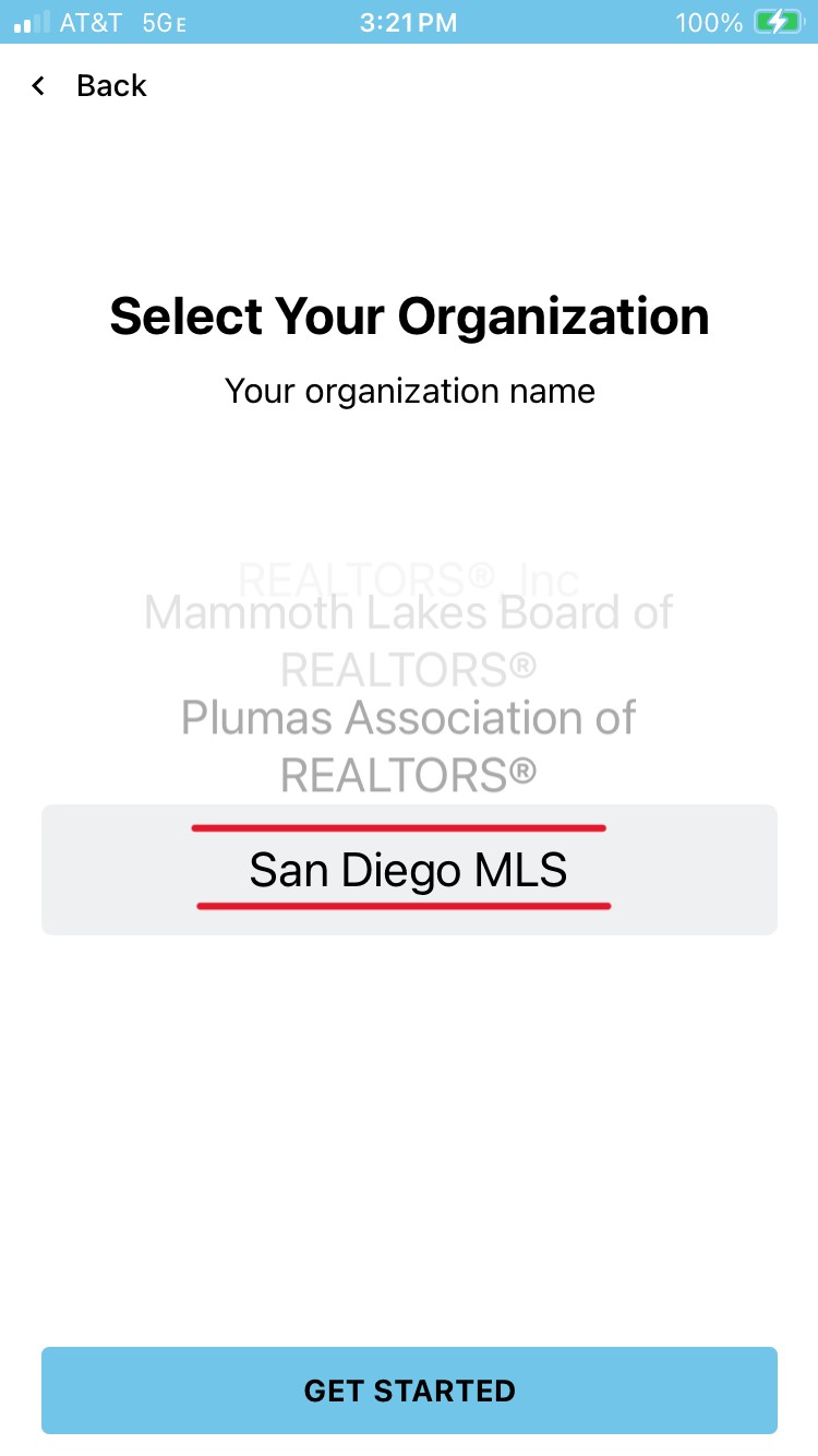 | STEP 5: Choose "San Diego MLS" and click on "Get Started". | ![]() |